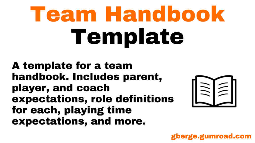 The Team Handbook is critical for all coaches. How do you address playing time? How do you define role of coaches, parents, and players? What is the proper channel of communication? What are your team expectations? What is your purpose statement as a coach? All of this and more in this Team Handbook Template.